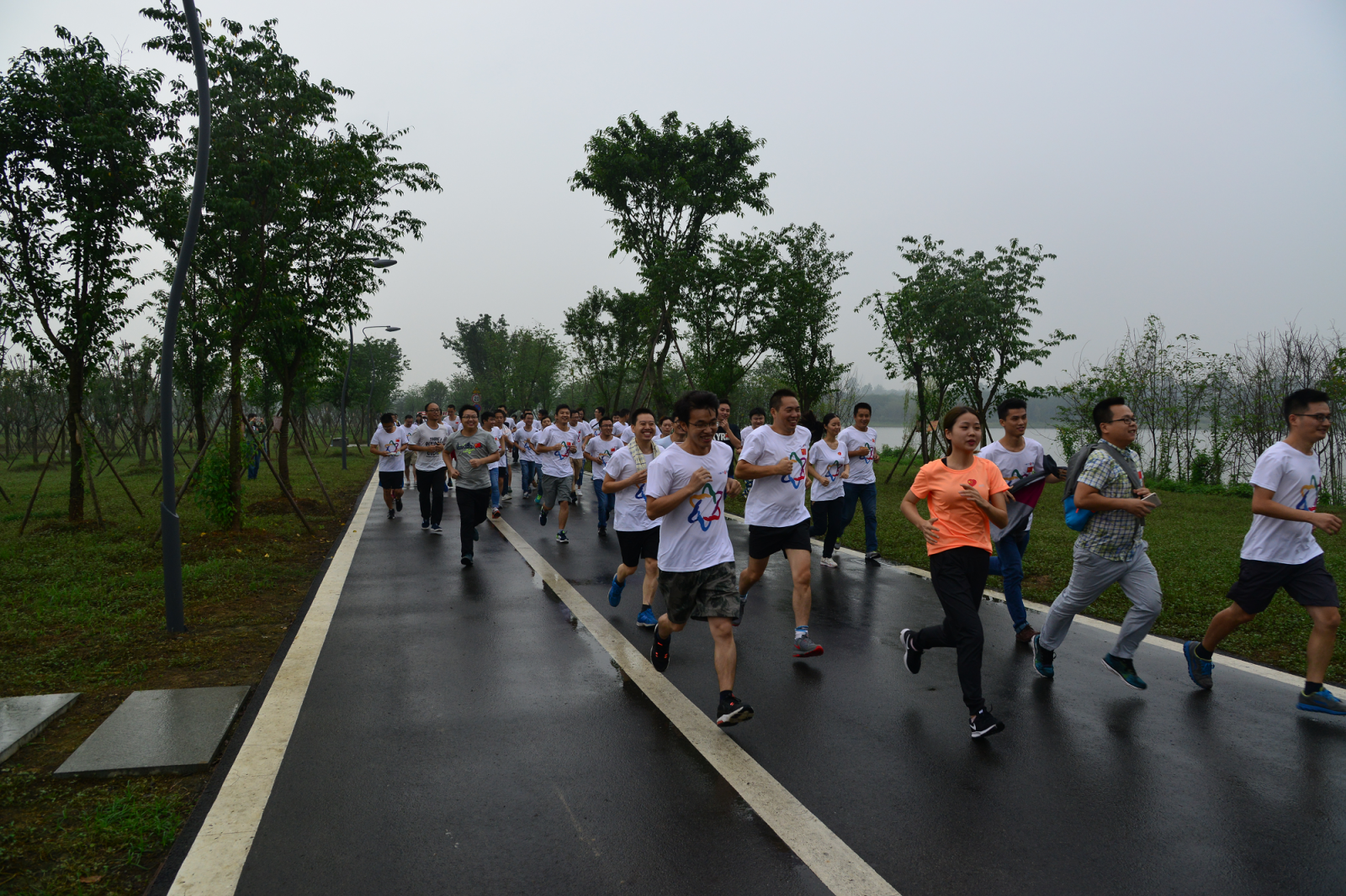 伴著零星灑落的雨滴、沐著湖風(fēng),47人的隊(duì)伍踏上了征程。